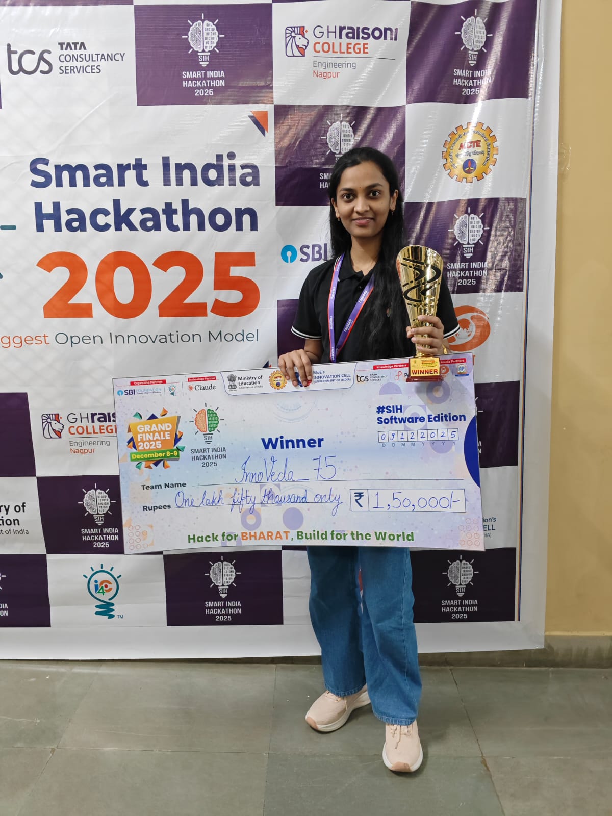Congratulations to Team DYPIEMR for the First Prize Winner at SIH 2025 (Rs 1.5 Lakh) Smart India Hackthon - 2025 Winner (Software Edition) on 10th December 2025 Team : Innoveda_75 PS ID : SIH 25075 (Ministry of Housing and Urban Affairs) Organisation Name : Government of Kerala Nodal Center : GH Raisoni College of Engineering, Nagpur Team Members : Mr. Himanshu Kejdiwal(Comp),Mr. Shubham Gupta (Comp),Mr. Rohit Sabale (Comp) ,Mr.Saish Kenekar (Comp) ,Mr. Sarthak Sontakke (Comp),Ms.Diya Kesarkar (AIDS)
