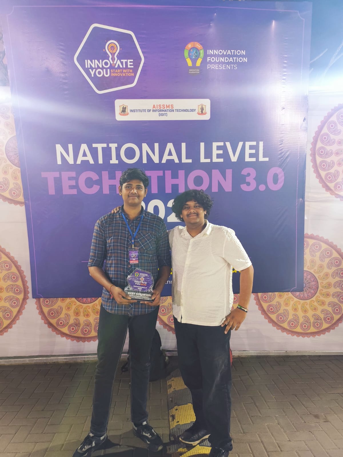 We are happy to share that our students Rohit Waghmode and Rahul Jordan Team Optopus participated in InnovateYou National Level Techathon 2026 conducted at AISSMS IOIT Pune, on 21st and 22nd February. we are proud to announce that the team secured Best Solution in Student Innovation Category and have been awarded a Trophy and 10,000 cash prize against 450+ teams from across Maharashtra.